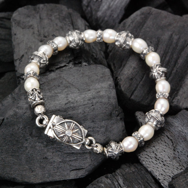 Silver Bracelet with THIRD EYE VIEW Lock + MORNING STAR Barrels and Beads or Pearls