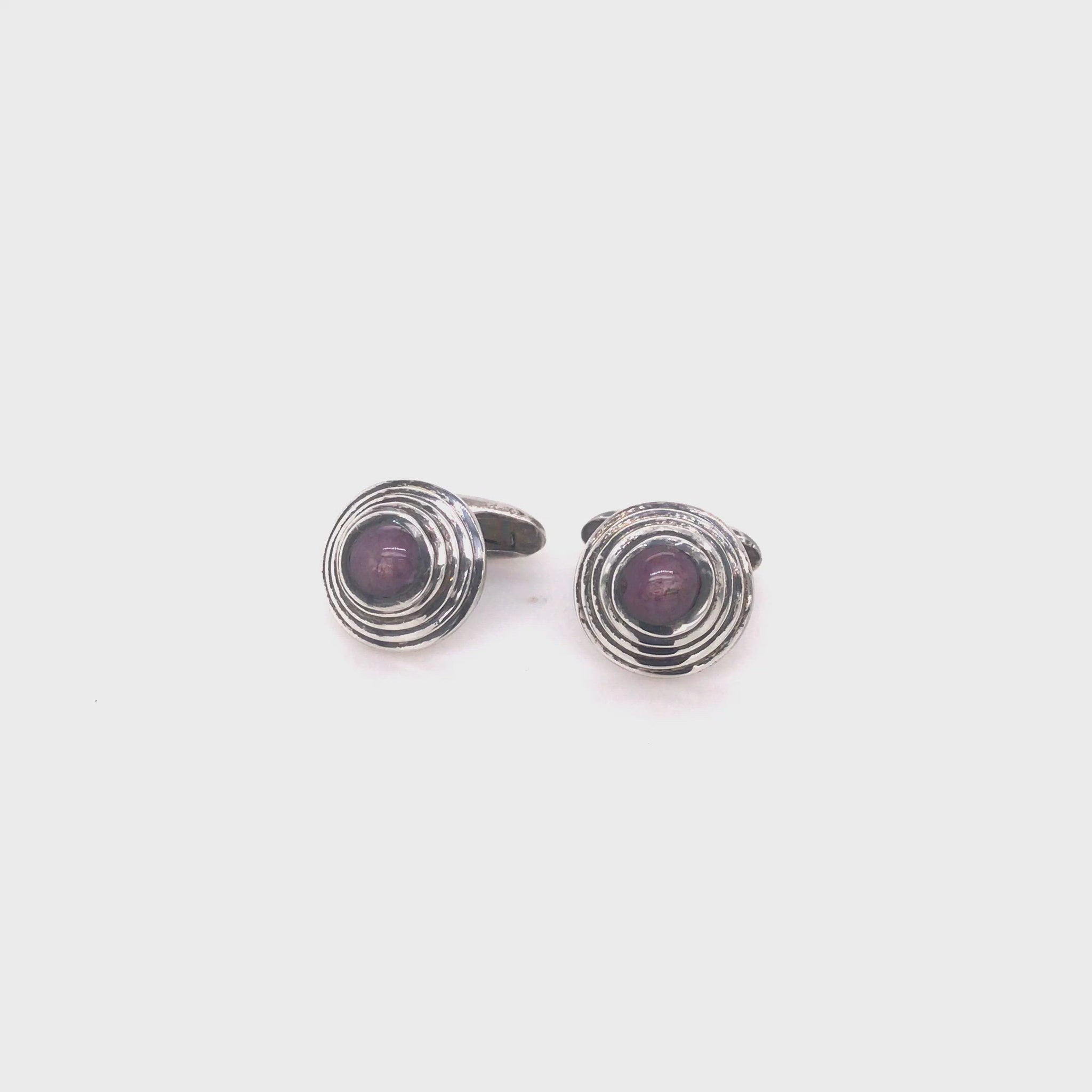 cufflink with round steps and genuine Star Rubies. Single pair.